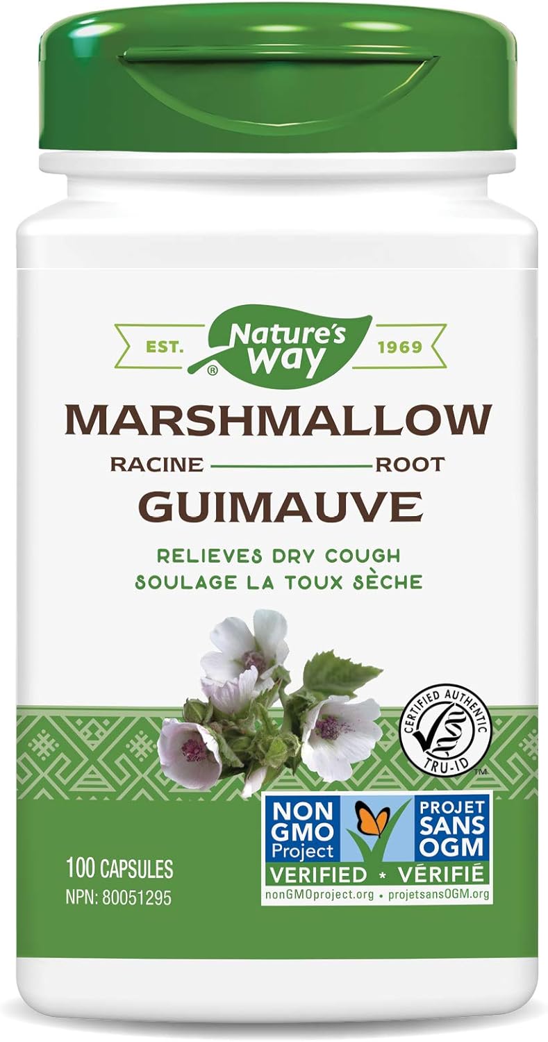 Marshmallow root also appears in some throat lozenges for sore throat and dry cough symptoms. Marshmallow root protects the sensitive mucus membranes of our respiratory tract and digestive tract. It can soothe dry cough, and also coughs caused by the common cold. Marshmallow root has a long history dating back thousands of years as an herbal remedy for cough, sore throat and other respiratory problems such as bronchitis and whooping cough (pertussis). [marshmallow root extract for the treatment of irritative cough: